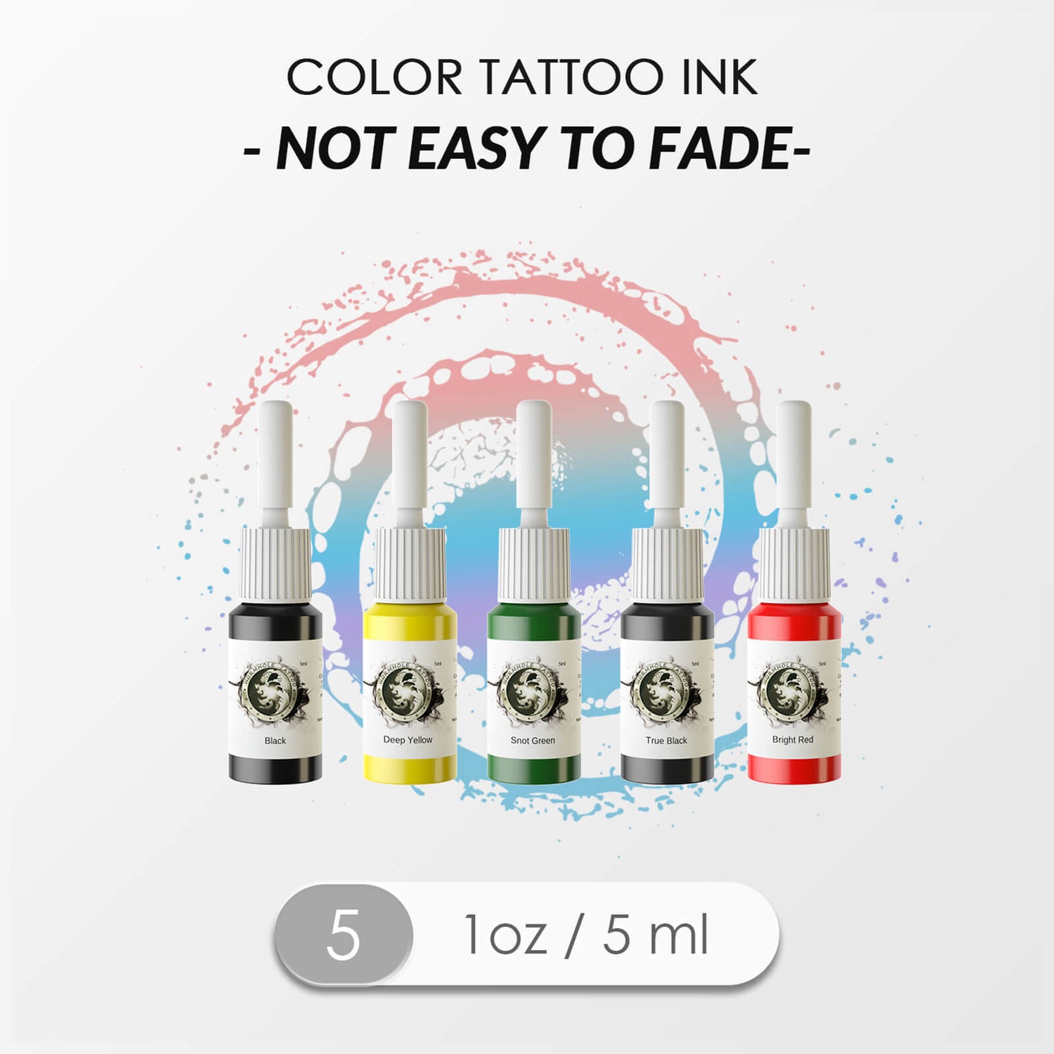 5 Essential Ink Colors – Practice-friendly inks for use on fake skin, perfect for learning color application.