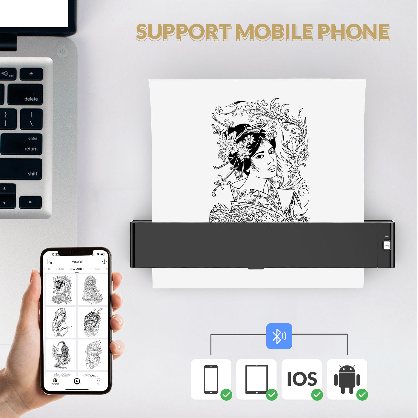 Bluetooth and PC Connection: The Wormhole Tattoo Stencil Printer is designed with both Bluetooth and PC connection. With the TattooPrinter APP, you can connect to a printer through Bluetooth on your mobile phone, which ensures convenience and ease of use.