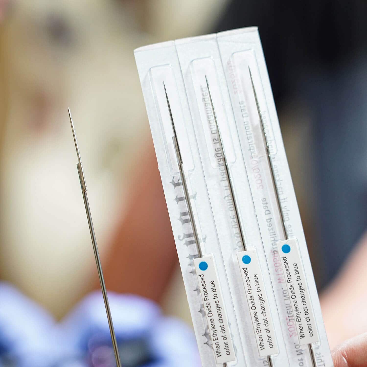 Each tattoo needle has its own sealed package and comes with a blue dot.