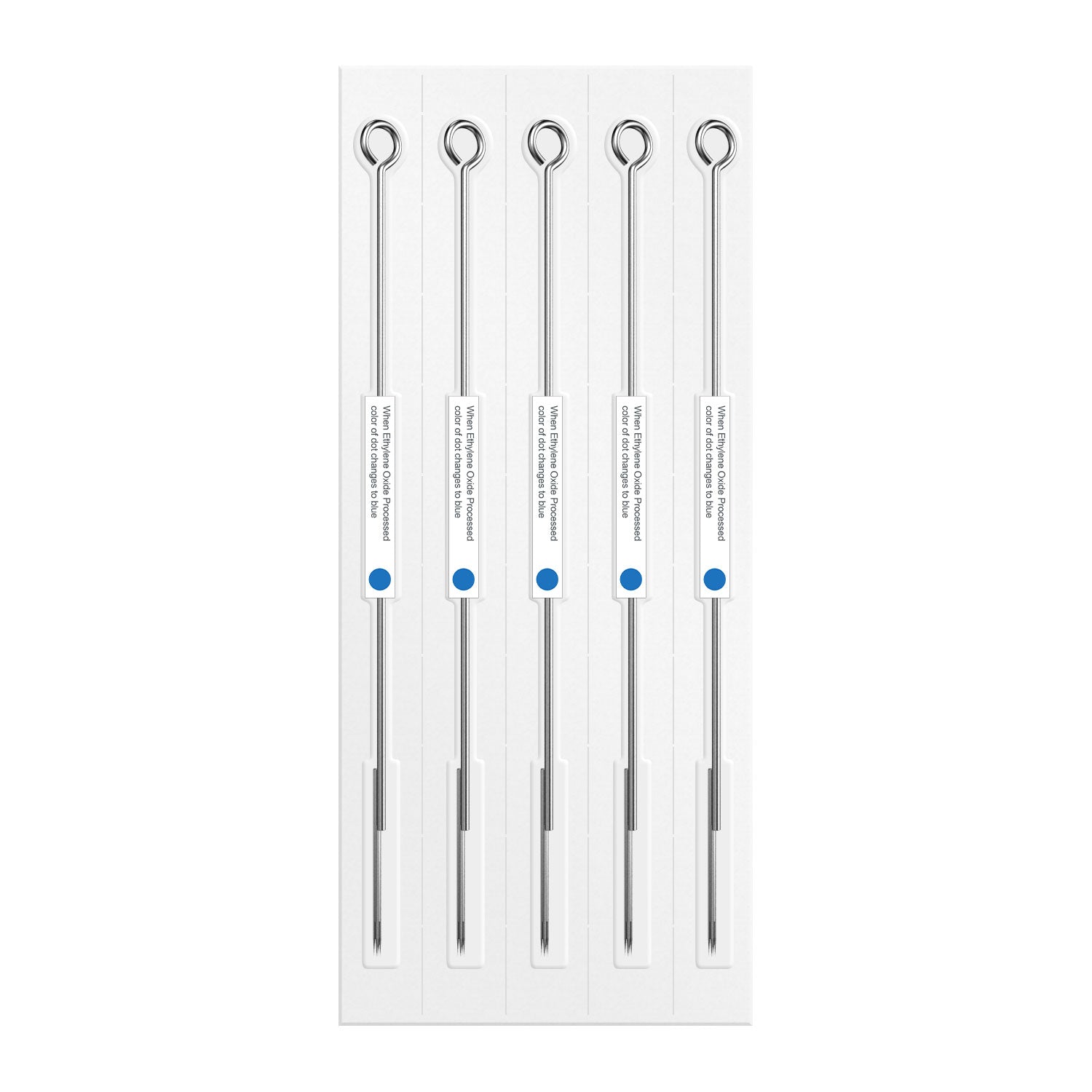 Each tattoo needle has its own sealed package and comes with a blue dot.
