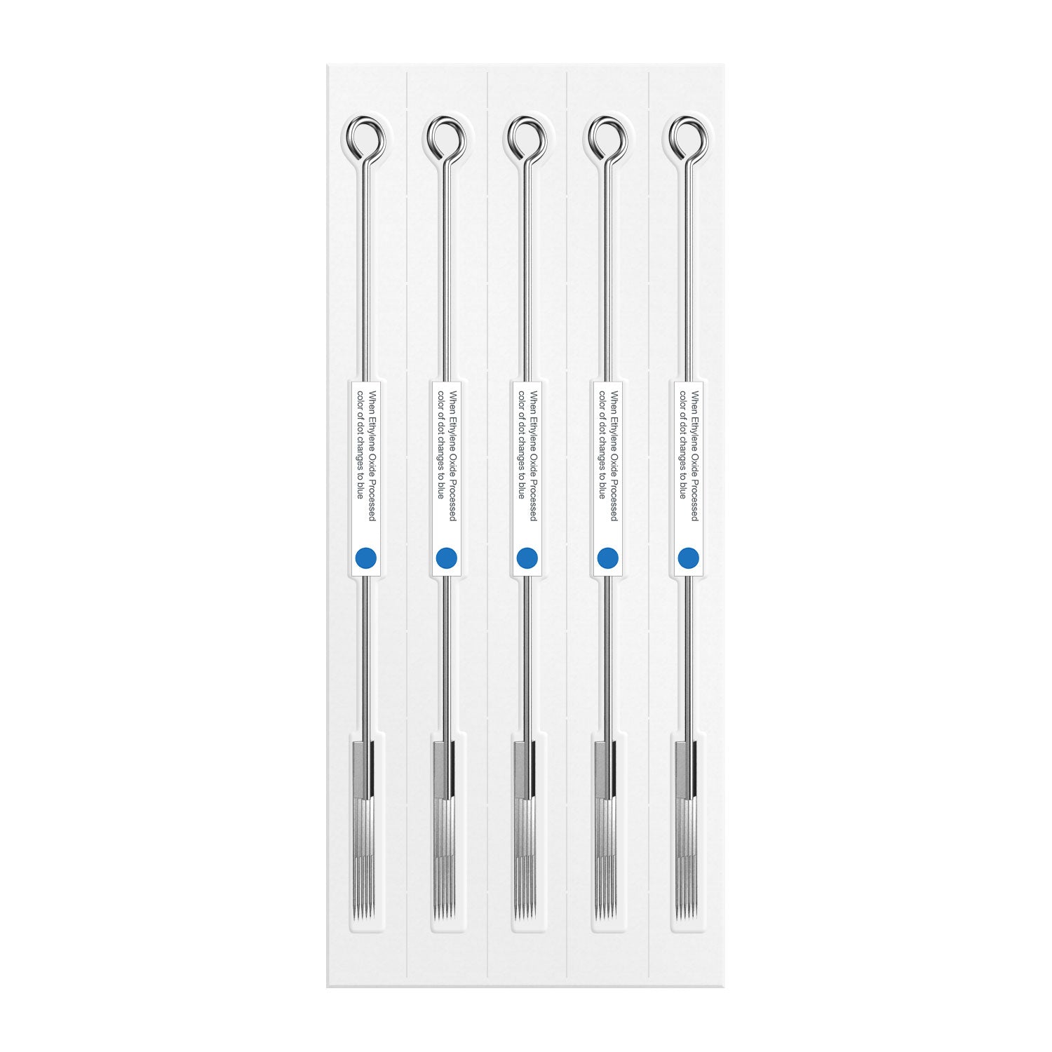 Each tattoo needle has its own sealed package and comes with a blue dot.