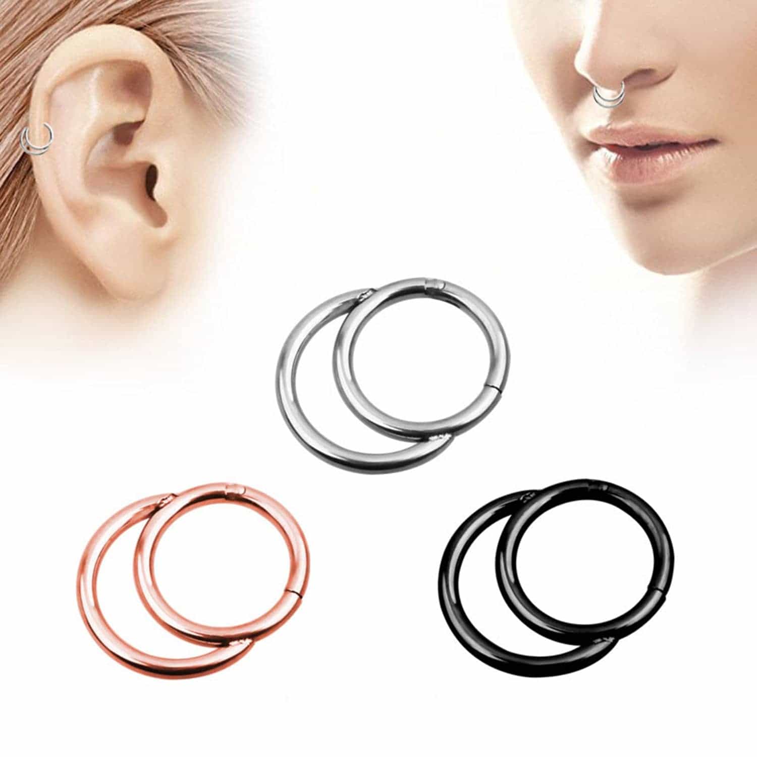 Simple yet classic piercings design, hoop nose ring, and stud nose screws perfect for women, men, teen girls, or boys, give you different daily wear; also used as earring hoops, nose piercing, lip rings, helix cartilage earrings, nose pin studs, etc.